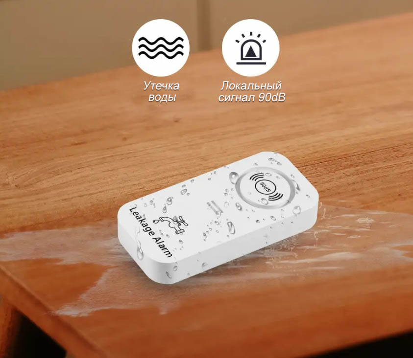 При попадании воды на сенсор утечки или под него происходит срабатывание сирены громкостью 90дБ, что позволяет вовремя заметить и устранить утечку воды.