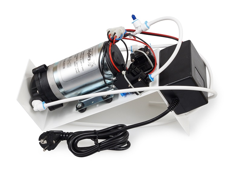 Помпа на кронштейне Kaplya KP-P6010-S в сборе и полностью совместима с любым бытовым фильтром обратного осмоса.