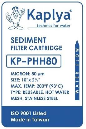 Kaplya KP-PHH80 - 10” картриджи многоразового использования для горячей воды. Предназначены для всех типов магистральных корпусов 10". Сделаны из полипропилена и стальной сетки. Микронаж - 80µm. Картриджи Kaplya KP-PHH80 используются как первый этап фильтрации воды бытового назначения. Главным преимуществом этих картриджей является возможность многократного использования
