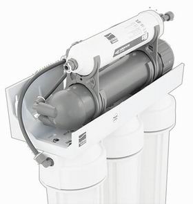 - 4я ступень - мембрана обратного осмоса производительностью 180л/сутки . Мембрана фильтра является сердцем фильтра и основной ступенью фильтрации. При степени фильтрации 0,0001 мкм, позволяет удалять из воды большинство загрязнений - 99%, в том числе вирусы и бактерии.