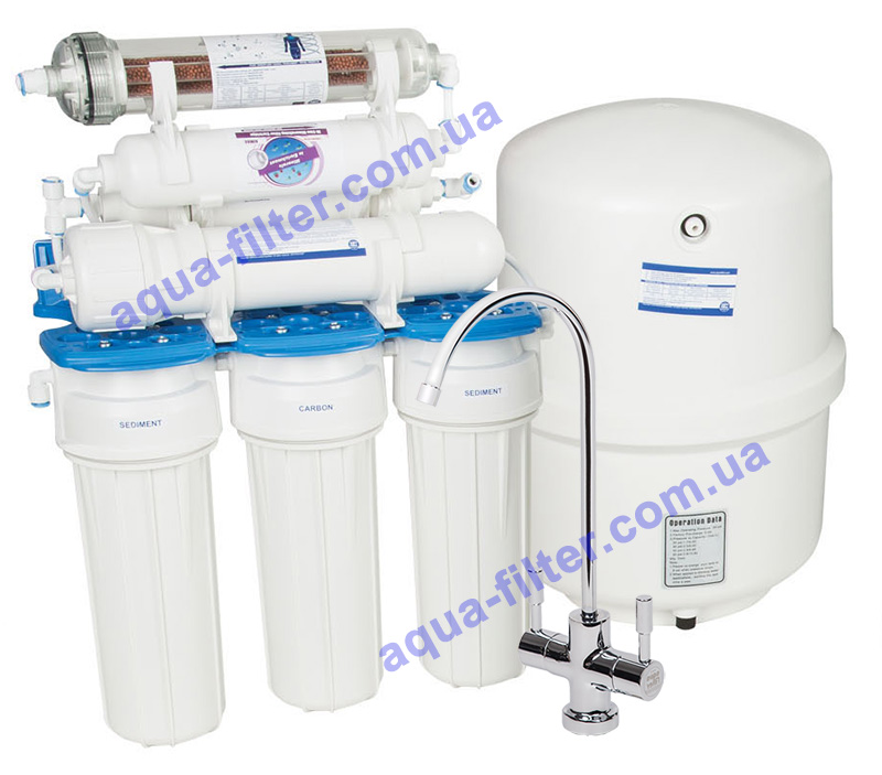 - 6я ступень - минерализатор Aquafilter AIMRO - используется для улучшения вкусового баланса воды и обогащает воду минералами необходимыми для человека.