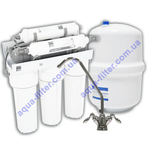 Пятиступенчатый фильтр обратного осмоса PLATINUM WASSER Ultra6 - фильтр очистки воды под кухонную мойку. Бытовая система обратного осмоса PLATINUM WASSER Ultra6 предназначена для установки под мойкой со степенью фильтрации 0,0001 мкм, что позволяет удалять из воды большинство загрязнений, в том числе вирусы и бактерии.