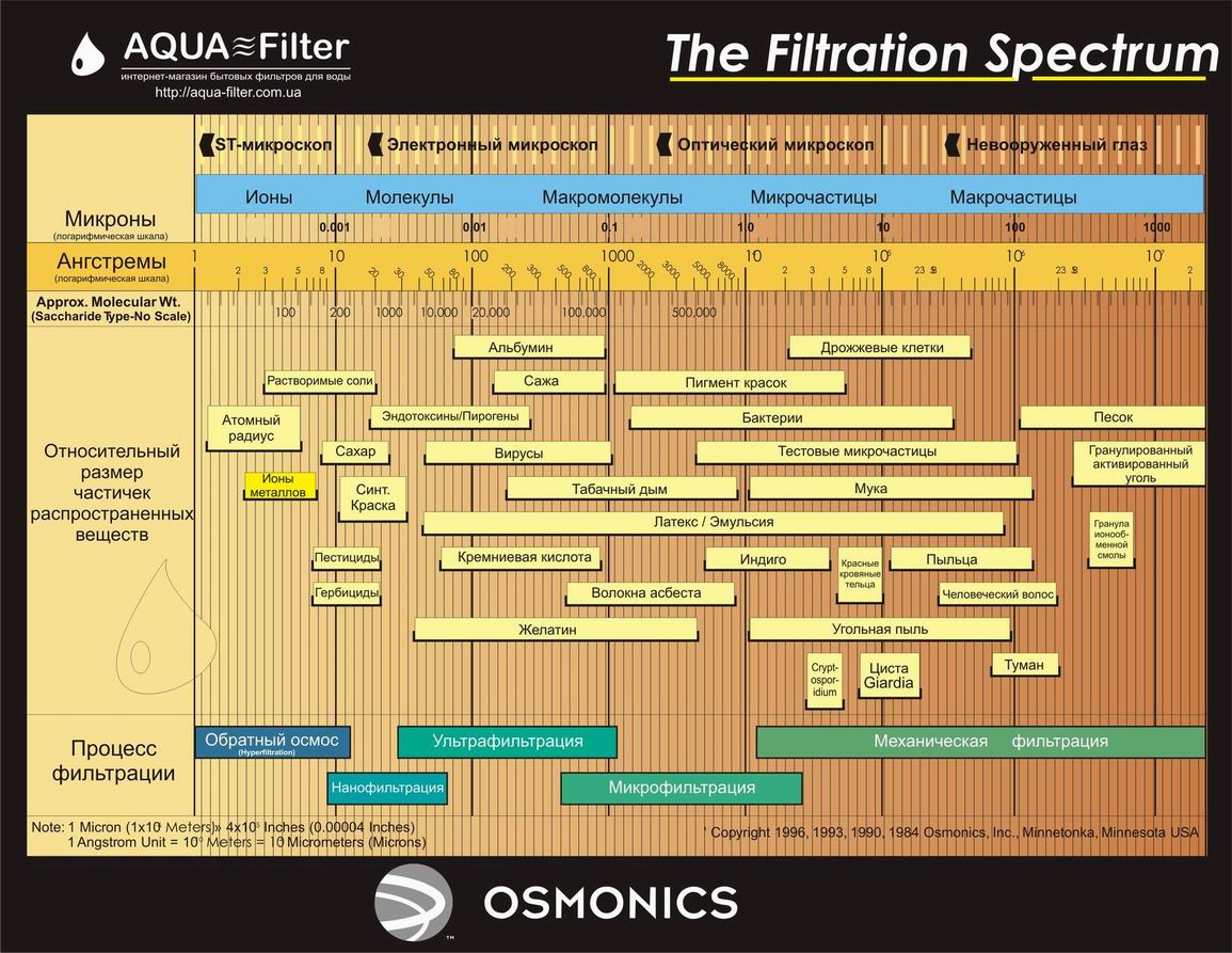 Таблица фильтрующих способностей обратного осмоса по сравнению с другими методами